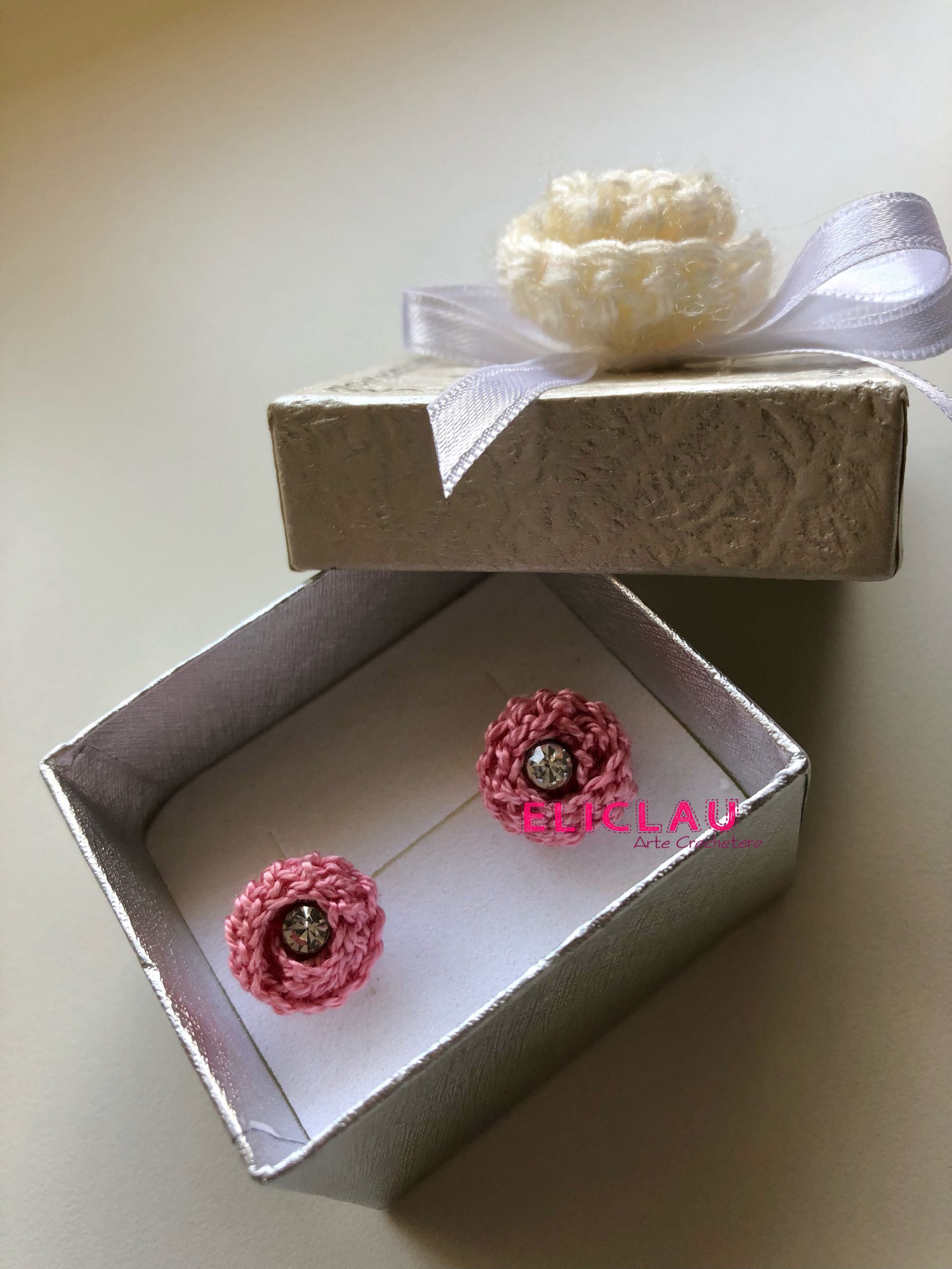 Con ellas realicé unos aros/pendientes super sencillos y fué la rosita más pequeñita que tejí.