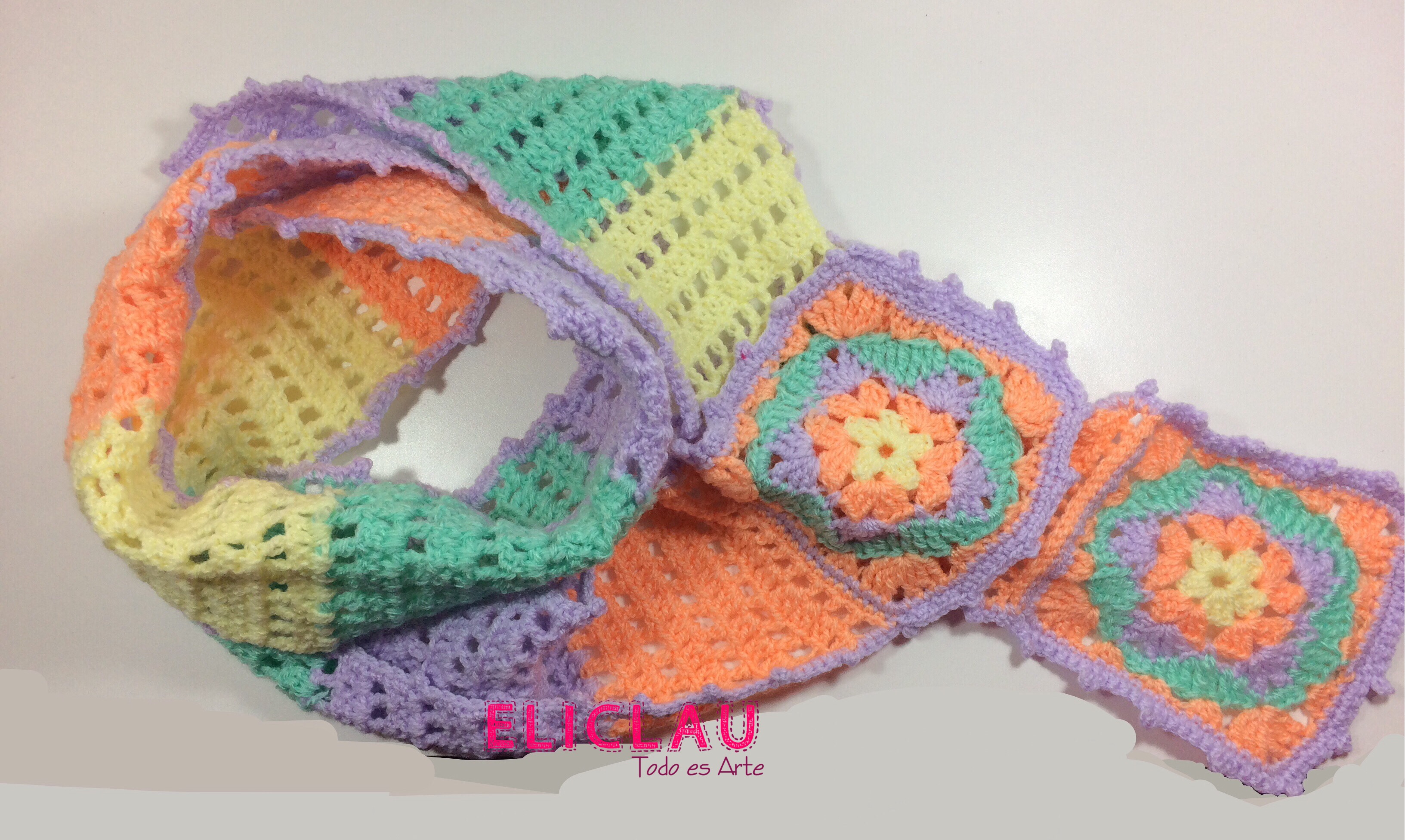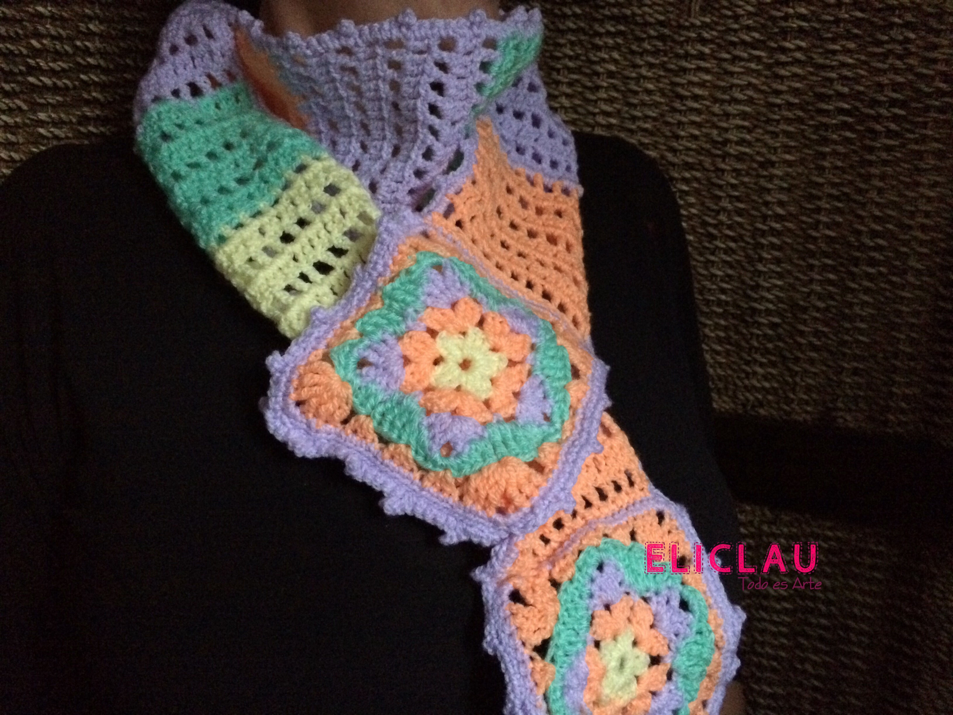 Lo que más me gustó de tejer esta bufanda fué elegir el patrón de los granny square y luego comenzar a tejer el resto de la bufanda sin previa idea del esquema de puntos a seguir.