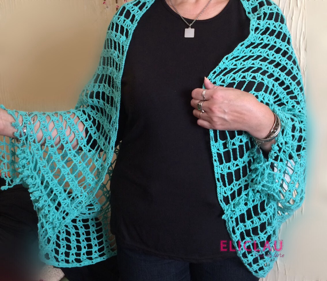 Les comparto el grafico del esquema de puntos y los tutoriales. El primer video muestra como tejer el esquema y el segundo video, el armado de la túnica.